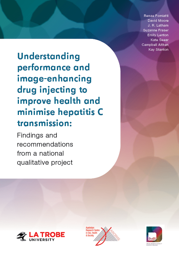 The report presents findings from interviews conducted with men who consume PIEDs and relevant health professionals. Aiming to generate new insights into the experiences of men who consume PIEDs, the project on which the report is based was designed to inform more appropriate and sensitive harm reduction initiatives, engagement strategies and hepatitis C prevention resources. Its aim was to develop a balanced understanding of men’s experiences and perspectives, placing issues of blood-borne virus (BBV) transmission in the context of whole lives and diverse priorities.