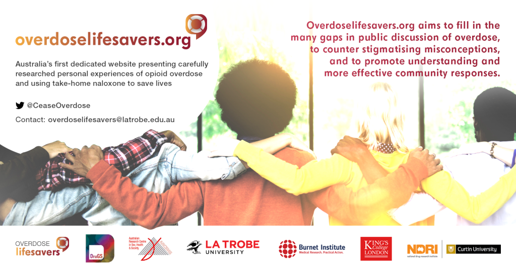 Launched at the 2019 Australasian Professional Society on Alcohol and other Drugs (APSAD) conference in Hobart on Tuesday 11 November, Overdoselifesavers.org is Australia’s first dedicated website presenting carefully researched personal stories of opioid overdose and the use of take-home naloxone to save lives. Developed from an ARC-funded project, the site as two key aims. First, it aims to support people affected by opioid overdose and thinking about using take-home naloxone. Second, it aims to inform the public about overdose and what can be done about it. Overall it seeks to look beyond the statistics and recognise that behind each death from overdose was a human life that had its own story and remains connected to the lives and stories of others.