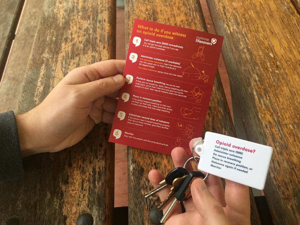 One of the outcomes of the DruGS team’s Australian Research Council-funded project on overdose prevention and take-home naloxone is a collection of Overdoselifesavers.org resources, including keyrings with backing cards explaining how to respond to an opioid overdose, and USB drives containing the project’s report and recommendations for future overdose policy and practice.