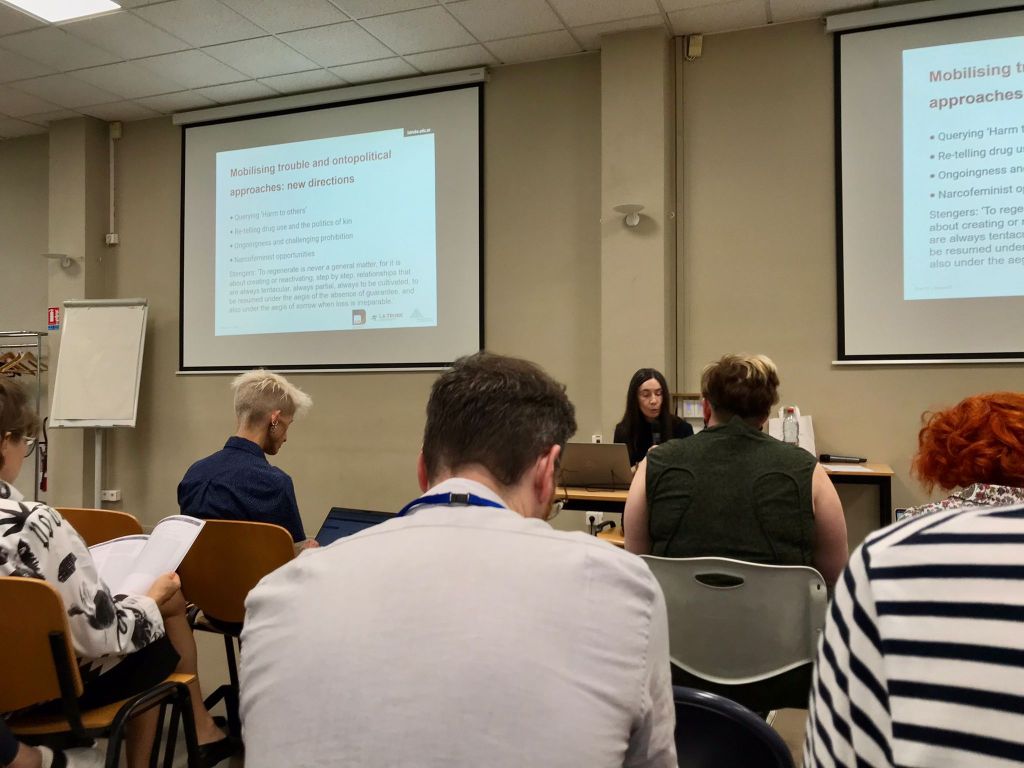 The DruGS program’s Adjunct Professor Suzanne Fraser opened day one of the conference by delivering the first of three keynote addresses. Entitled ‘“Staying with the trouble” in onto-political research on drugs’, the keynote drew on the work of Donna Haraway in her book Staying with the Trouble (2018) to identify how researchers may ‘embrace trouble’ in productive ways. The keynote address expertly drew together key aspects of Haraway’s work and demonstrated their potential for informing empirical alcohol and other drug research, drawing on Suzanne’s own contributions to the field of critical drug studies. In doing so, the presentation repeatedly drew out what critical thinking and ‘staying with the trouble’ can do, what it attunes us to, and how it can help us to think through ‘problems’ we encounter, including in our jobs as researchers. Most importantly, her address reminded delegates of the ongoing tragedy of the overdose crisis and the importance of staying with this tragedy and finding ways forward through the ruins of the war on drugs, As the opening keynote, Suzanne’s address welcomed and oriented attendees to our current location: to the intellectual history of the CDP conference; to the concerns of this year’s theme; and to the ongoing, iterative work required to ensure the continuation of the field of ‘critical drug studies’ itself.