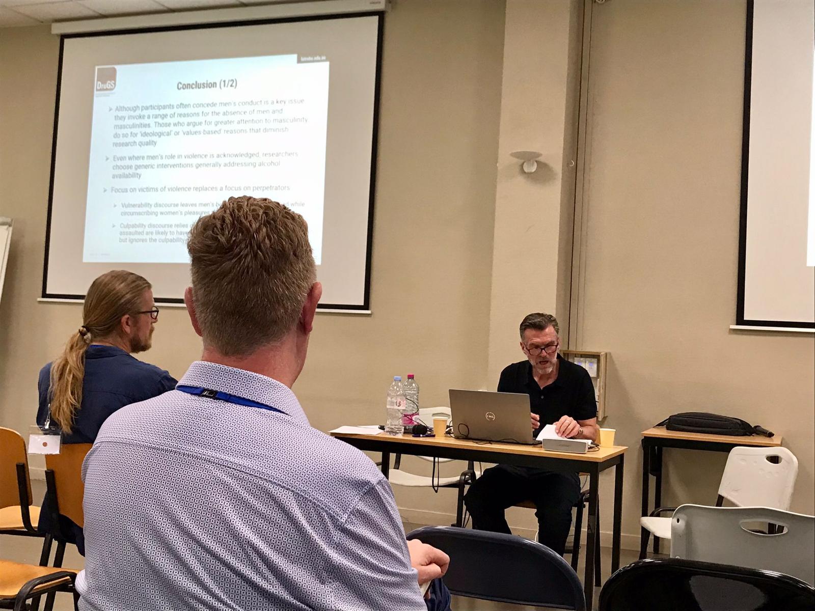 Adjunct Professor David Moore delivered a paper from an ARC-funded international comparative project on the handling of gender in research and policy on alcohol and violence in Australia, Canada, and Sweden entitled ‘Displacing gender: Troubling concepts and methods in research on alcohol and violence’. Building on earlier work from the same project, David identified and examined three troubling conceptual and methodological processes that have led to the elision of men and masculinities in quantitative research on violence, and offered recommendations for future research practice in which more direct engagement with gender, especially masculinities, is central.