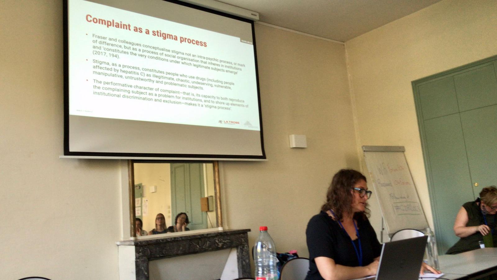 The conference also included two presentations on recent hepatitis C research. Presenting from a further ARC-funded project on ‘post cure’ lives led by our colleagues in the Gender, Law and Drugs program, Ms Emily Lenton delivered a paper entitled ‘Troubling complaint: The legitimate subject and hepatitis C-related stigma’. Emily asked an important question not yet addressed in the hepatitis C literature: how do people who experience stigma or discrimination feel about making complaints? The paper drew on Sara Ahmed’s (2021) work on complaint to consider what experiences are worthy of complaint, how people enact complaint, what prevents people from complaining, and what is at stake for those who complain. Overall, Emily called for a troubling of complaints, to reconceptualise them not as individual problems, but instead as collective, structural concerns.